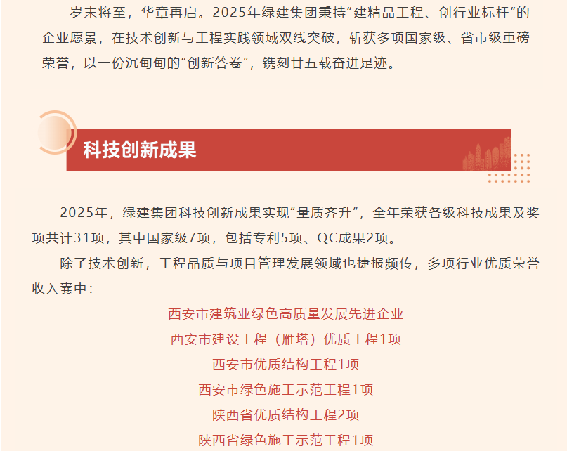 步履坚实廿五载,载誉前行启新程——绿建集团2025年创新成果与荣誉综述